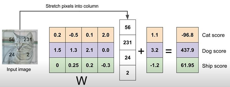 - Bias : 10x1 column vector -> Data independent, add with result, y. Give preperence to certain score
