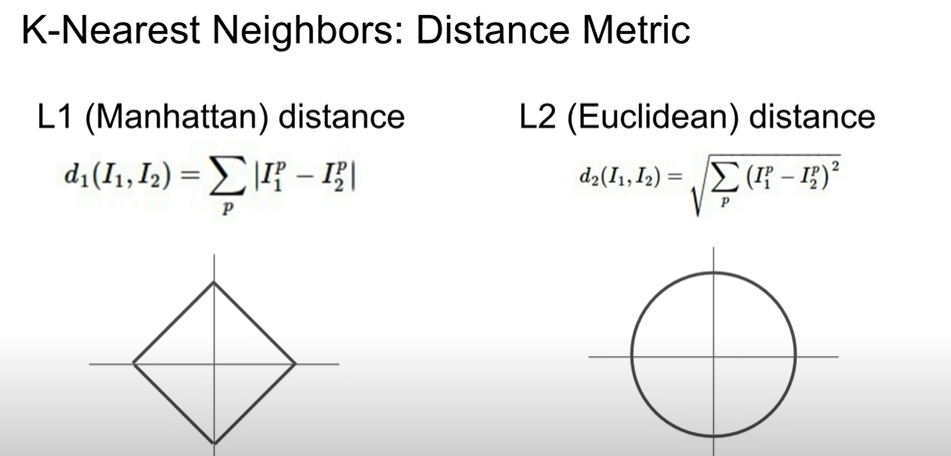 - L1 의 경우 어떤 좌표상에 있는지가 굉장히 중요 - 좌표 축이 바뀌면 L1거리도 바뀜 - 벡터의 각각 요소들이 개별적인 의미 가지고 있을떄 유용 (eg 키, 몸무게)