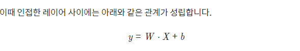 - 2개 이상의 레이어가 쌓여 만들어진 것을 다층 퍼셉트론(Multi-Layer Perceptron; MLP)이라고 부름