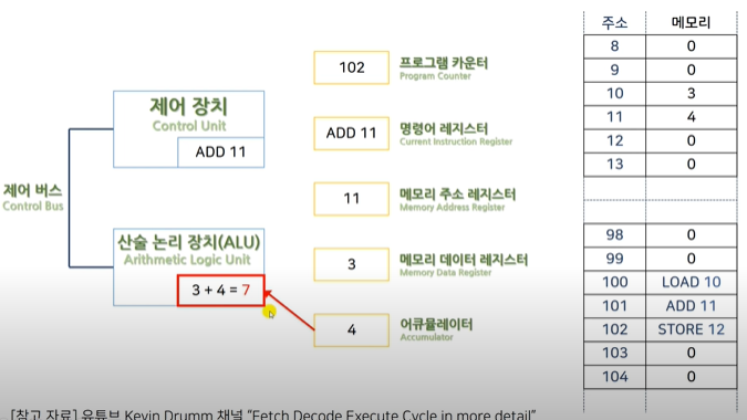 7. Control Unit decode the insruction, and put address in memory address register to conduct instruction