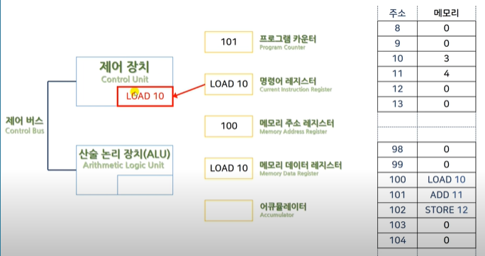 10. Then, instruction 'LOAD 10' is done. Move to next instuction(102- ADD 11). Same process.